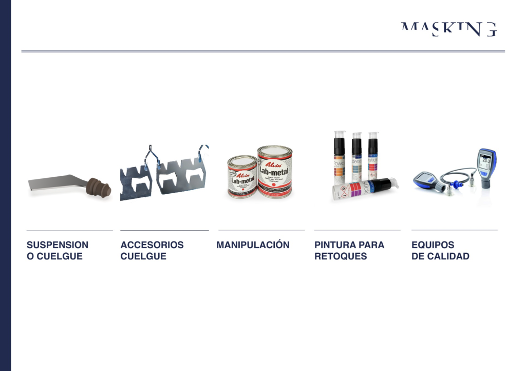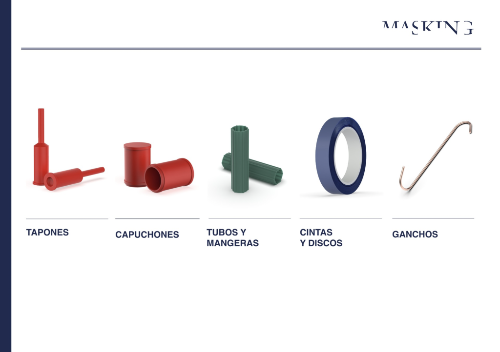En Masking, nos hemos consolidado como especialistas en soluciones avanzadas para el enmascarado y los sistemas de cuelgue en procesos industriales de recubrimiento. Nuestro objetivo es garantizar la máxima precisión, eficiencia y calidad en cada proyecto, adaptándonos a las necesidades específicas de nuestros clientes.